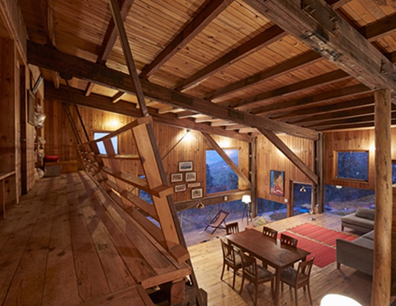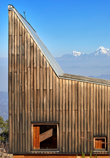据报道,马特拉建筑事务所(Matra Architects)在喜马拉雅山麓建造了一幢木头度假屋。这座房子的木质覆层结构具有一个尖顶,其中的天窗允许日光进入开放式的室内。