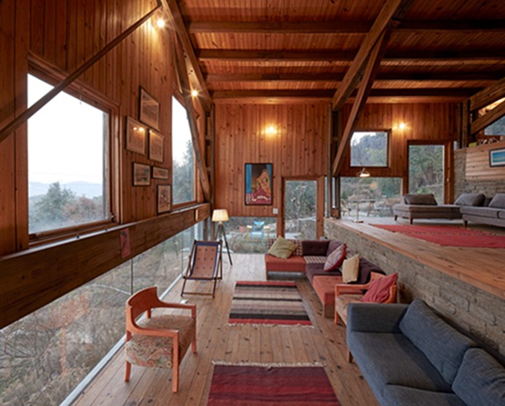 这座建筑是由新德里的马特拉建筑事务所设计的,位于海拔2000米的一个台地上,能够观看喜马拉雅山全景。