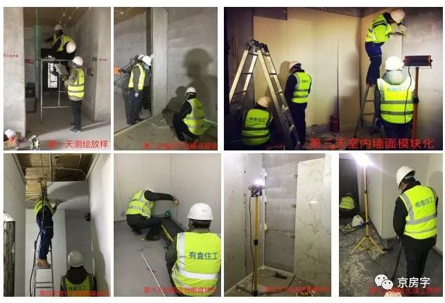 在这里多说一句,在此之前,【京房字】也曾看到过一些企业自己宣称的“装配式装修”,虽然使用了预制的墙板、地板等配件,但施工现场还是有刮腻子、用胶水等情况,从而造成装修过的房间内还是刺鼻气味很重。
