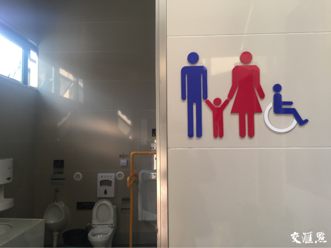 装配式厕所严格按照国家厕所新标准建设成。进门左手边屏幕上正放着《新闻联播》等节目,屏幕下方提供免费卫生用纸。内设男卫生间、女卫生间、第三卫生间及管理房间。第三卫生间看上去非常宽敞,有独立的马桶、洗手台,和残疾人如厕设施、婴儿换尿布台等。厕位比例也按照新版公厕“国标”设置,管理员告诉记者,“有9个女厕位,6个男厕位。”