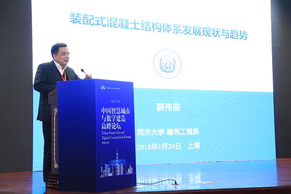 围绕建筑信息化,中建股份有限公司助理总经理、副总工程师,中建科技集团董事长叶浩文作了题为《基于BIM的装配式建筑全过程信息化应用》的专题报告。他提出,装配式建筑信息化应用包括两个方面:一是实现基于BIM的设计、生产、装配全过程信息集成和共享,二是实现装配式建筑实施全过程的成本、进度、合同、物料等各业务信息化管控。提高信息化应用水平,提高建造效率和效益。BIM(建筑信息模型)作为集成了建筑工程项目全生命周期各种相关信息的工程数据模型,其可视化、协调性、模拟性、优化性和可出图性的特点天然符合了新型建筑工业化的要求,在装配式建筑建设中应用BIM技术成为趋势。