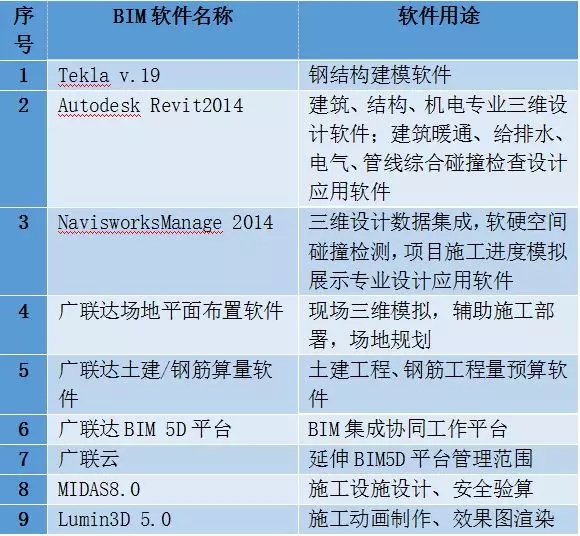 表2 厦门中心大厦BIM软件配置