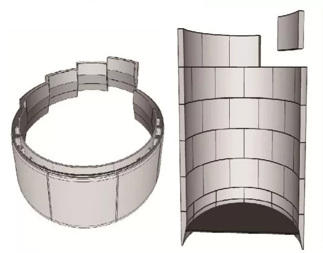 不仅仅简单规则的建筑幕墙表皮可进行工厂化生产和装配化施工。复杂的建筑幕墙表皮也可以实现。如厦门天语舟雷达工程,其采用了大量双曲面板来实现复杂的船状外型(图17)。