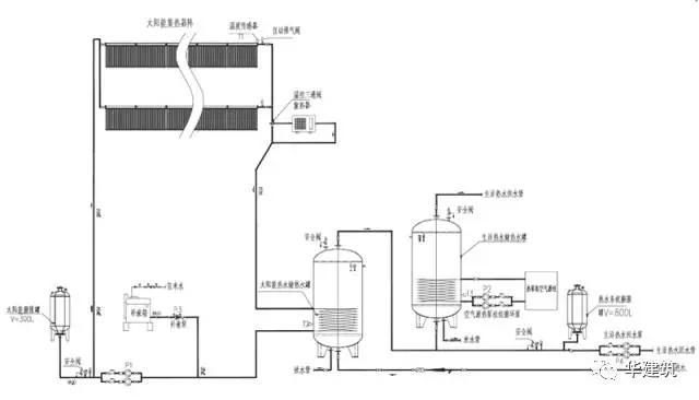 热水采用集中供应的形式,采用太阳能热水系统供应,辅助热源为空气源热泵。系统采用机械循环,闭式系统。热水供水温度为60℃,回水温度为55℃。热水循环管道采用同程布置方式。屋顶的集热器应采取可靠的防止集热器过热的保护措施。