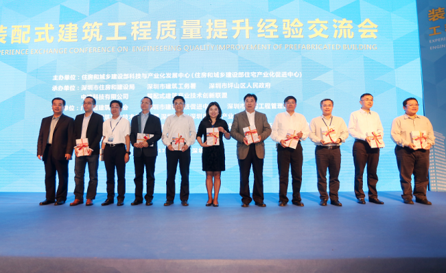 1日,在住房城乡建设部建筑节能与科技司的指导和支持下,由住房和城乡建设部科技与产业化发展中心主办的“装配式建筑工程质量提升经验交流会”在深圳隆重召开。本次会议是由深圳市住房和建设局、深圳市建筑工务署、深圳市坪山区人民政府、中建科技有限公司、装配式建筑产业技术创新联盟联合承办,由广东省建筑业协会、深圳市建设科技促进中心、深圳市住宅工程管理站、装配式建筑产业技术创新联盟深圳分会(深圳市建筑产业化协会)、钢结构分会、天津分会、山东分会协办。住房城乡建设部建筑节能与科技司苏蕴山司长、何任飞处长、住房城乡建设部住房保障司王超处长、住房和城乡建设部科技与产业化发展中心文林峰副主任、广东省住房和城乡建设厅陈天翼总工程师、深圳市建筑工务署乔恒利署长、深圳市住房和建设局高尔剑副局长兼总工程师等领导,以及来自全国各省市住房城乡建设管理部门的领导、业内专家和相关企业代表近700余人参加了会议。