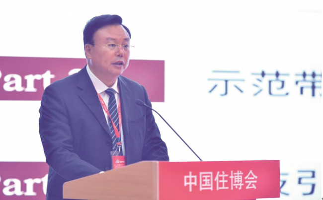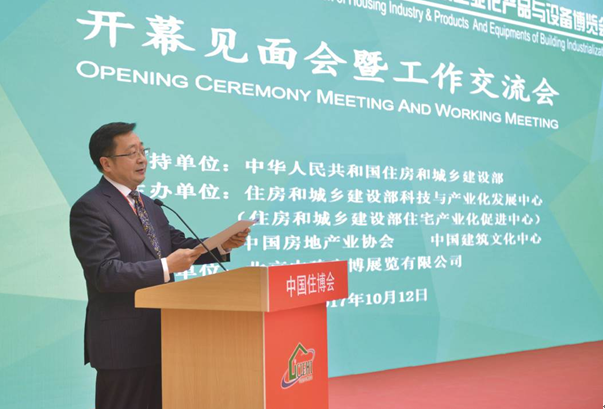 中国住博会主办单位中国房地产业协会冯俊副会长、中国建筑文化中心曲琦主任致辞。