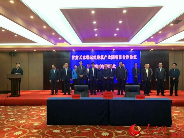 人民网兰州9月28日电(呼双鹏)28日,甘肃建投与天水市秦州区就投资建设天水装配式建筑产业园签订框架协议。这是甘肃建投继投资建设西北最大装配式钢结构住宅小区、全省第一幢钢结构住宅小区之后,强力挺进西北装配式建筑的又一浓墨重彩之做,同时也意味着甘肃省在大力推进装配式建筑进入“实战期”。