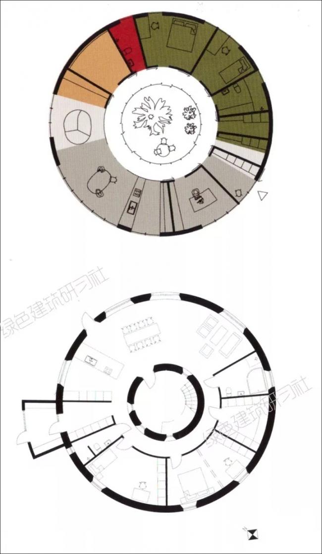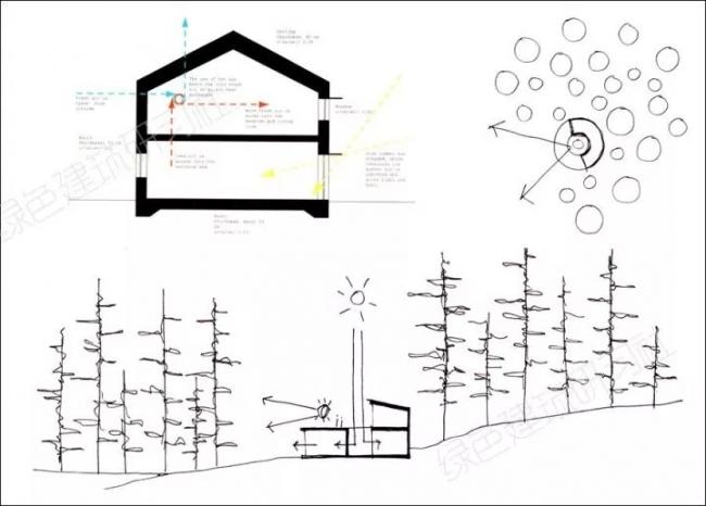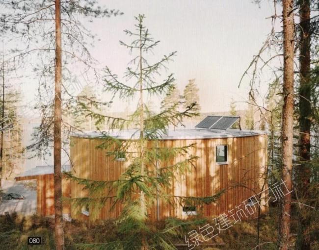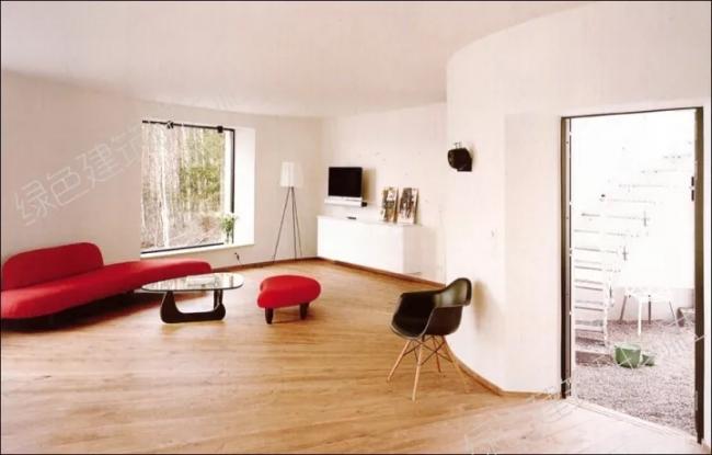 作为一个被动房,尼伯格别墅是一个极好的隔热建预制装配式筑,能量主要由已经存在的能源提供,这些能源主要由人体热量和家用设备产生。圆形的房子也能消除冷桥,并减少房子的围墙面积,同时减少热量损失。我们的能耗损模拟表明,这套房子每年用于加热的能量消耗只有25kWh/m2。在这种被动房中,气密性是减少热量损失的一个重要因素。当尼伯格别墅在进行气密性测试时,创下了瑞典的新纪录——50Pa气压下为0.038l/sm2。瑞典的被动房气密性标准是0.3,而之前的纪录是0.07。