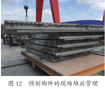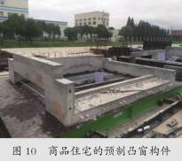 由于商品住宅的房型多变和方案阶段没有考虑标准化和模块化设计因素等原因,大部分的预制构件生产按照业主提供的深化设计图纸,进行按图订单加工。由于标准化程度低,构件的生产流水节拍很难控制,例如图 10 中的商品住宅的预制凸窗构件,加工难度大,单个预制构件方量不足 1 立方,且无法叠加堆放,占堆放场地的空间。