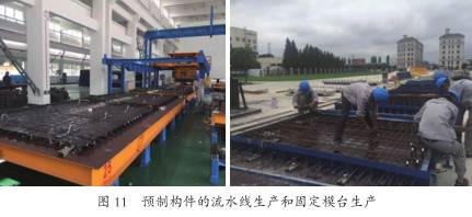 多种原因导致装配式建筑构件生产过程中的流水线应用程度差,存在大量的固定模台生产的现象。采用固定模台生产,将传统的现场施工方法异地建造,在工厂进行预制构件的边模固定、钢筋绑扎、预埋件安装、混凝土浇筑和养护拆模等工序,解决了现场湿作业的问题,但模台施工需要大量的劳动力,成为目前装配式建筑构件生产的现状。