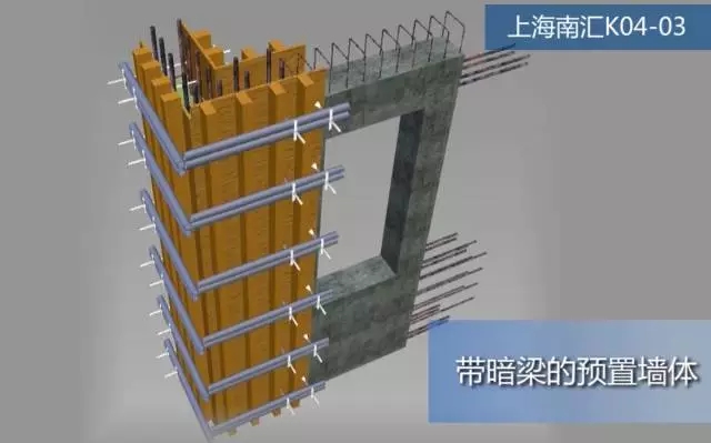 吊装前完成暗梁部位水平箍筋的安装,随后预制墙体吊装就位,安装水平箍筋,再利用套筒接头连接竖向钢筋,最后合模浇筑。