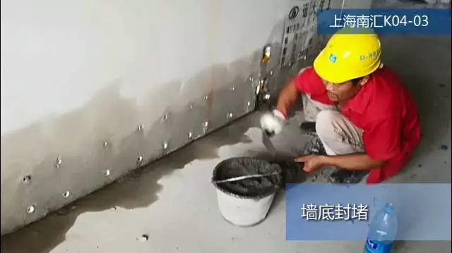采用高强无收缩砂浆对墙底拼缝进行封堵,确保在注浆过程中墙底不漏浆。