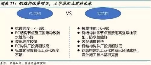 1)我国混凝土发展时间较长,行业熟悉混凝土生产工艺,而钢结构发展时间短,人才少,因此PC结构能简单快速地适应政策对建筑工业化的要求;