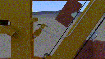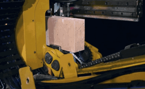 砖块置于传送带上,沿着机器人伸缩臂运送