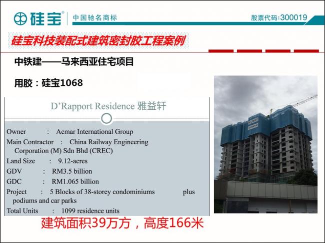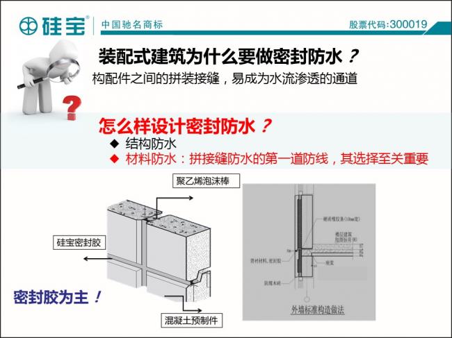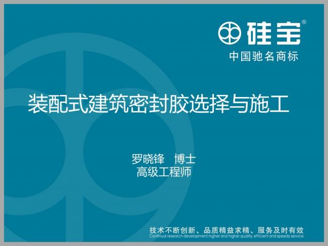 成都硅宝科技股份有限公司技术中心罗晓锋博士以《装配式建筑密封胶选择与施工》为题,分析了装配式建筑配套的密封胶具有的粘接性、位移能力、低模高弹性能、耐候性、对混凝土无污染性和可涂刷性能等指标,并详细介绍了硅宝科技关于装配式建筑密封胶的一站式解决方案、装配式建筑密封胶典型案例及合作伙伴等,为装配式建筑密封胶选用及实践提供了可借鉴的经验。
