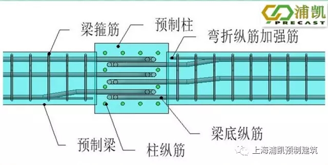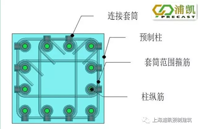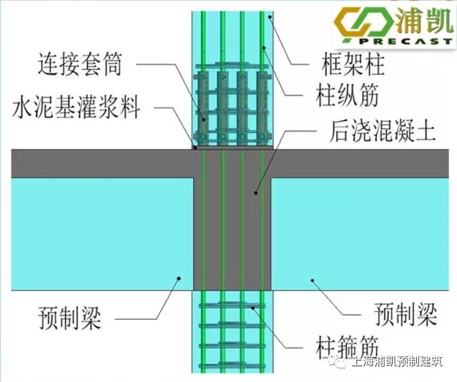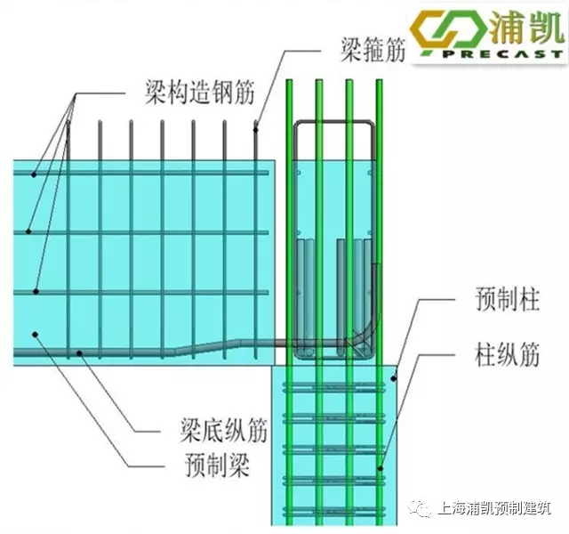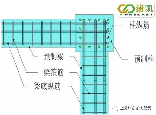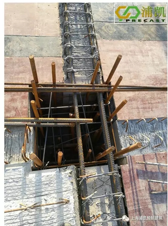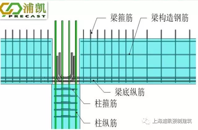 上海蒲凯预制建筑科技有限公司的做法:在施工图设计阶段,提前对结构单体中全部梁柱节点钢筋避让优化,结合预制构件吊装顺序,以后浇节点区施工简单为第一原则,进行框架梁柱节点包络设计。常规设计节点包括:预制框架柱竖向连接,预制梁在框架柱内锚固两种。