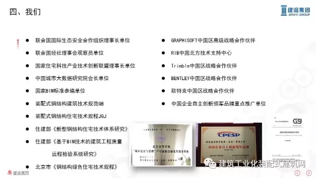 鲍雷副总裁指出,目前国家大力发展装配式建筑和BIM技术的环境已形成,北京建谊集团抓住机遇,迎接挑战、大胆创新,制定了钢结构体系信息化发展简约、快捷、优质、价廉八字实施目标,提出了分工式架构向分布式架构转变的先进平台路线指导思想,根据钢结构天然装配化的特点,结合BIM技术自主研发了钢结构装配式全寿命周期BIM管控平台,实现了钢结构产业化发展的工业化、标准化、模块化及信息化要求,并成功应用到了相关项目中,取得了理想效果。