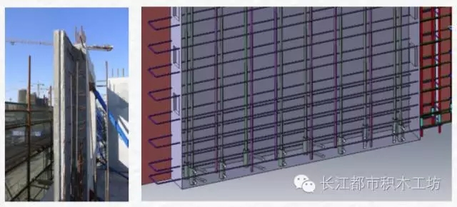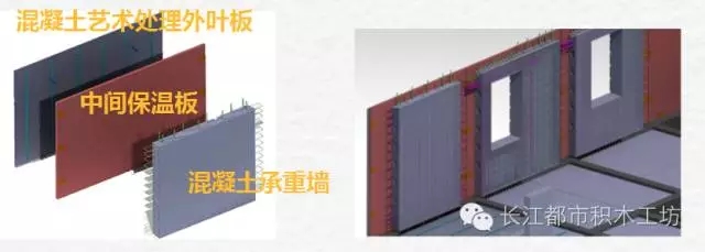 东西山墙预制剪力墙采用夹心保温体系,即将结构的剪力墙、保温板、混凝土模板预制在一起。在保证了结构安全性的同时,兼顾了建筑的保温节能要求和建筑立面艺术效果。