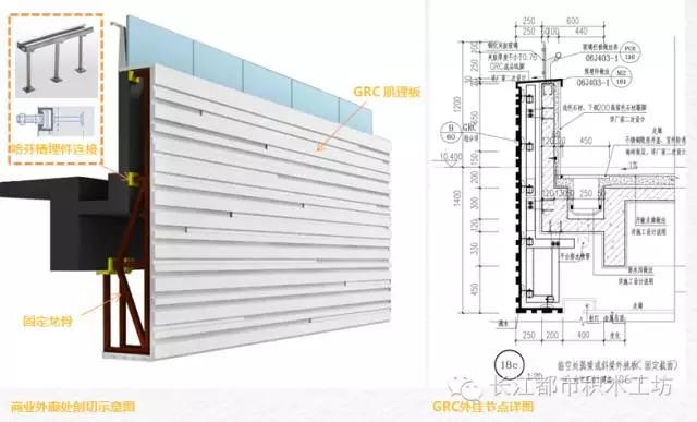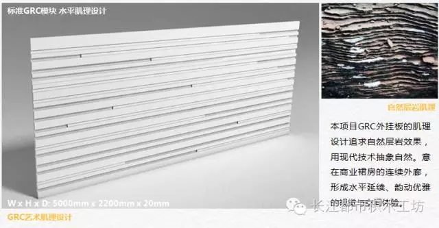 GRC 预制挂板与山墙横向错动肌理,形成交相呼应的统一视觉艺术效果。