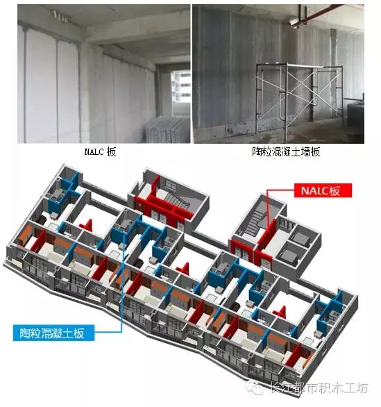 项目厨房、卫生间内、分户墙、公共区域填充墙采用陶粒混凝土板材;其余户内隔墙采用NALC 板。