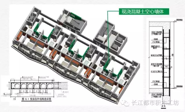实现施工过程中无外模板、无外脚手架、无砌筑、无粉刷的绿色施工。建筑内部仅在预制剪力墙拼接处浇筑混凝土,模板用量以及现场现场模板支撑及钢筋绑扎的工作量大大减少。