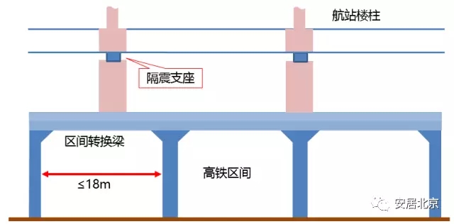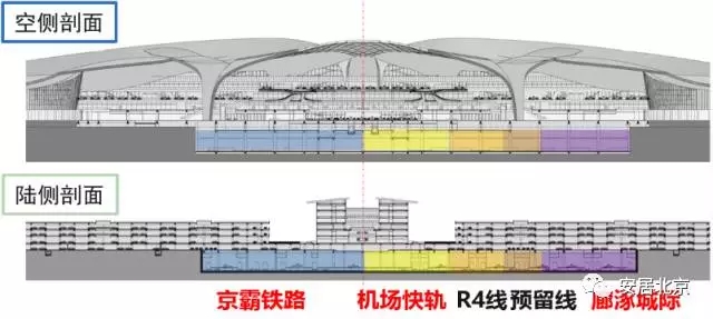 轨道交通影响——航站楼B1层为行李传送通道、机电管廊系统和预留的APM捷运通道;B2层为轨道交通层,设有5条轨道,其中京霸铁路的部分车辆将以不低于300km/h高速通过,将产生较大的震动。