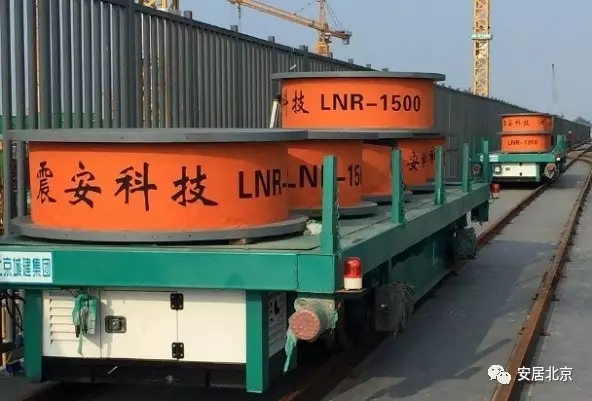 航站楼应用的隔震支座单个重量在2.5t-5.6t,由于航站楼超长、超宽,航站楼核心区工程总承包单位北京城建集团有限责任公司在施工过程中采用栈桥技术解决隔震支座的水平运输问题。