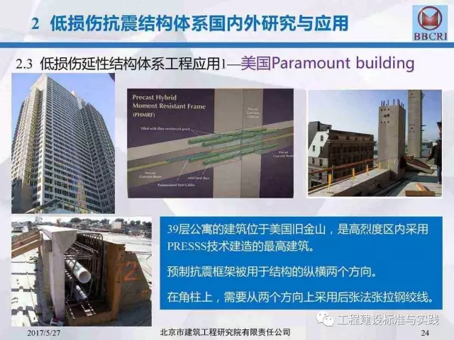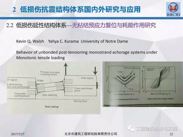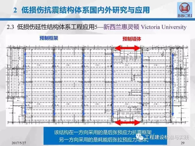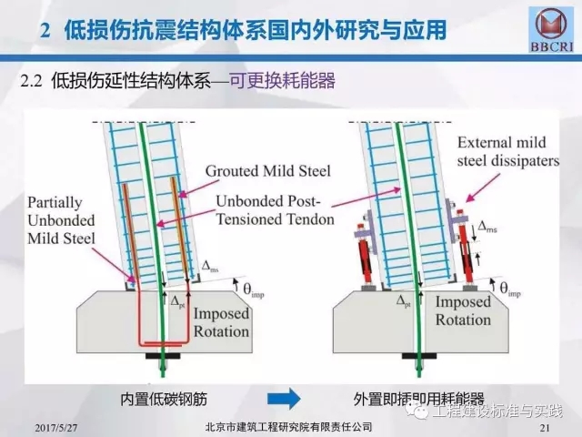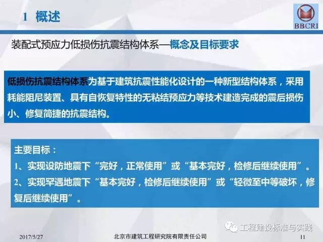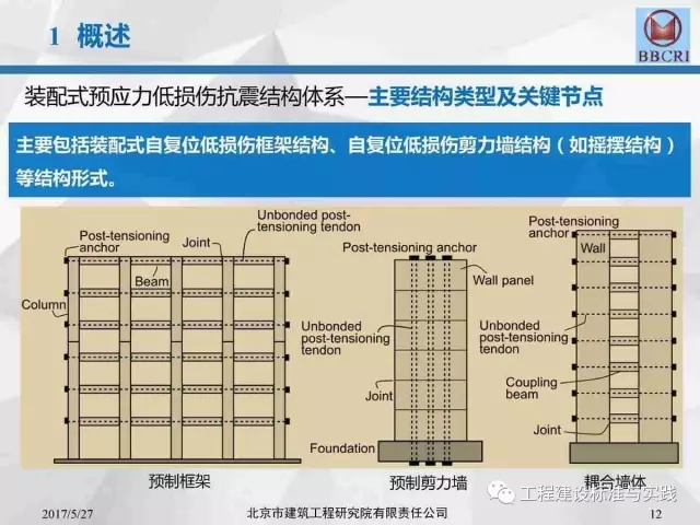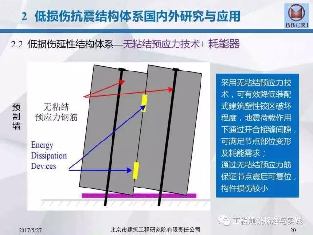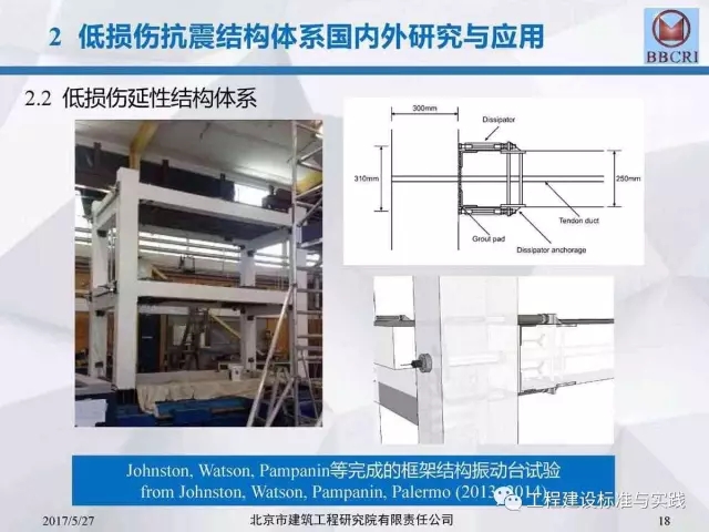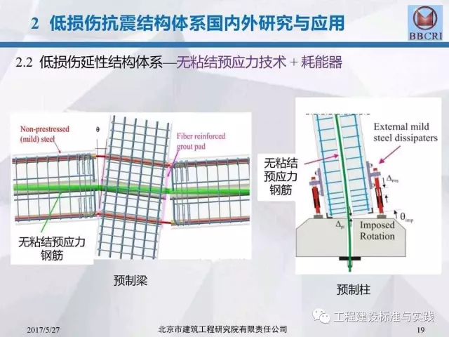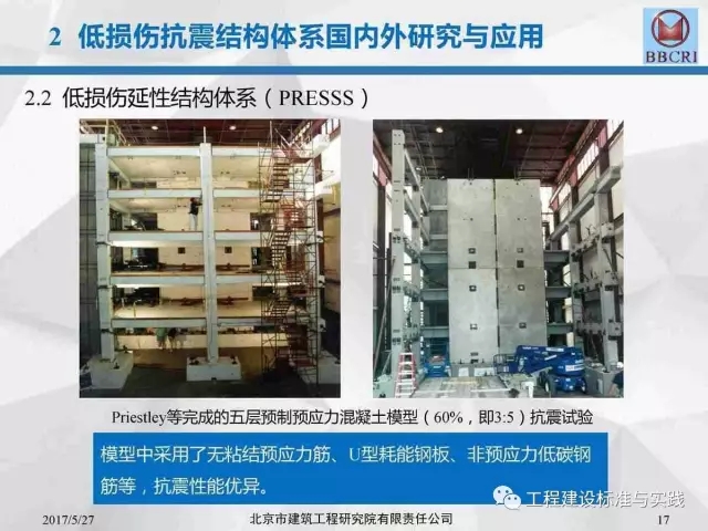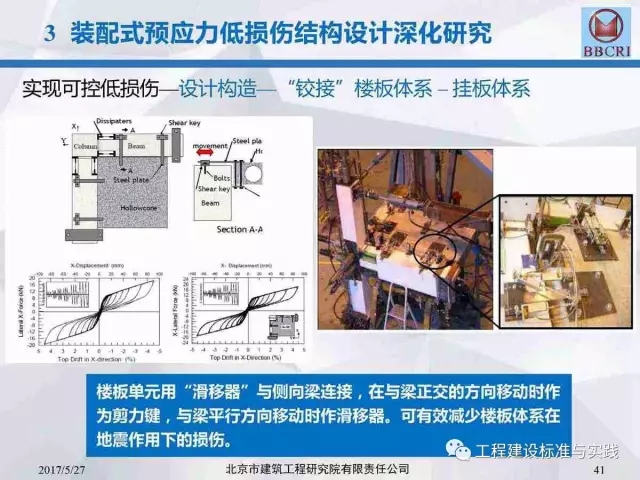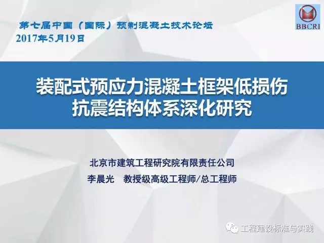 北京市建筑工程研究院副院长/总工李晨光在第七届中国(国际)预制混凝土技术论坛上作了题为《装配式预应力混凝土框架低损伤抗震结构体系深化研究》的主题报告,报告中介绍道:低损伤抗震结构体系为基于建筑抗震性能化设计的一种新型结构体系,采用耗能阻尼装置,具有自恢复特性的无粘结预应力等技术建造完成的震后损伤小、修复简洁的抗震结构。其目标是实现设防地震下完好正常使用或基本完好检修后正常使用;实现罕遇地震下基本完好检修后继续使用或轻微至中等破坏,修复后继续使用。