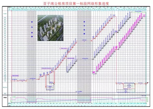利用斑马网络计划软件,我们绘制了总控形象进度计划,确定了出正负零、主体结构封顶、二次结构完工和装修结束几个关键里程碑时间节点: