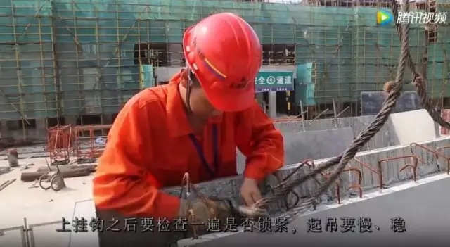 上挂钩之后要检查一遍是否锁紧,起吊要慢、稳。