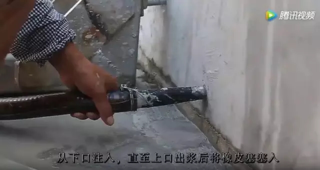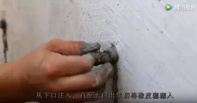 从下口注入,直至上口出浆后将橡皮塞塞入。