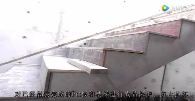 对已经吊装完成的PC板和楼梯进行成品保护,防止损坏。