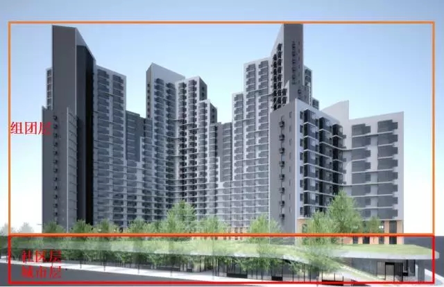 3、组团层主要由住宅楼组成。