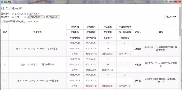 图9、进度对比分析输出表格