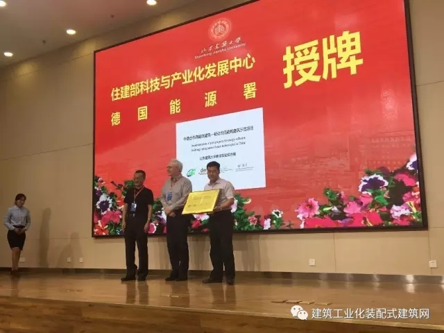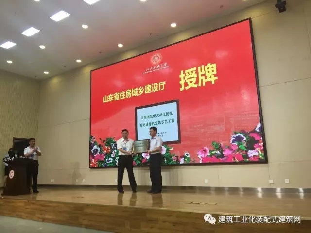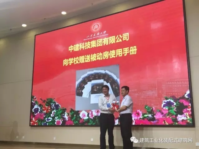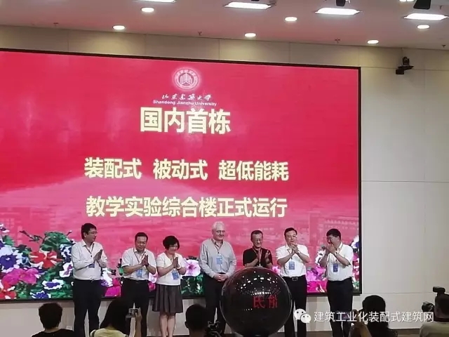 山东建筑大学党委书记王崇杰、中国建筑节能协会会长武涌,山东省住房和城乡建设厅副厅长李兴军、济南市城乡建设委员会副主任吴力、中建科技集团有限公司总经理李栋出席启用仪式并分别进行了总结演讲,有关领导共同为国内首栋钢结构装配式被动式超低能耗教学实验综合楼正式运行揭幕。中国建筑节能协会会长武涌、德国能源署石特凡教授授予山东建筑大学教学实验综合楼为“中德合作高能效建筑—被动式低能耗建筑示范项目”;山东省住建厅李兴军副厅长授予山东建筑大学教学实验综合楼为“山东省装配式被动式超低能耗绿色建筑示范工程”;中建科技集团有限公司李栋总经理向学校赠送《被动式超低能耗建筑使用手册》。