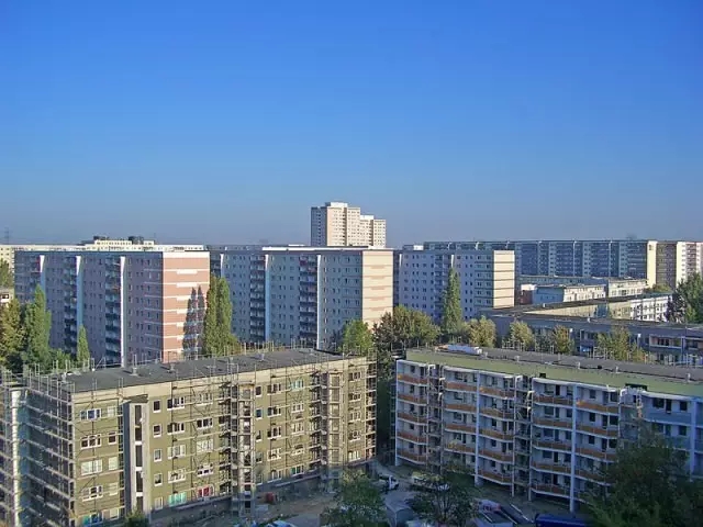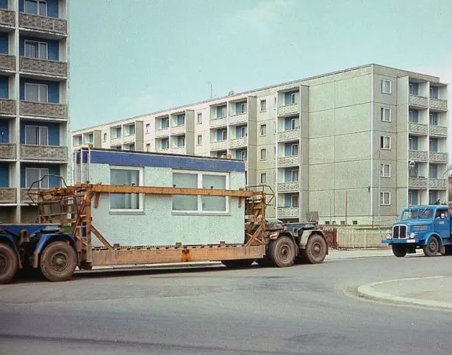 住宅建设工程耗费了东德大量财政收入。为节约建造成本和快速建设,设计开发出不同系列厂品,如Q3A, QX, QP, P2系列。预制混凝土大板住宅项目大量重复使用同样户型、类似的立面设计。大板建筑规划形态僵硬、缺少变化,在老城区通常采用推倒重建模式,破坏了原有装配式结构城市肌理。