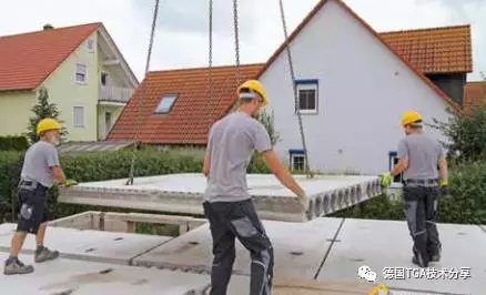 德国装配式混凝土结构基本上可以达到干式施工,施工现场只有在基础施工时需要现浇混凝土,其他时间基本不需要现浇施工,可减少建筑垃圾、节省建设时间。