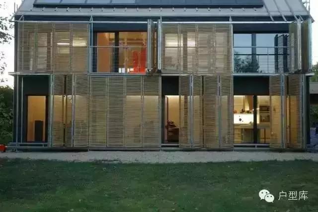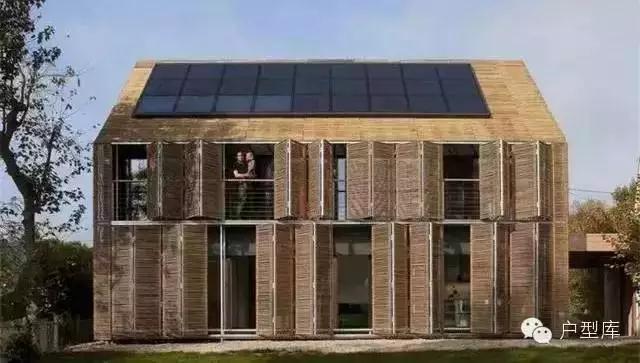 这栋房屋只有基础使用的是混凝土,房屋主体采用的是工厂预制的板式木结构,也就是集成房屋,或者新型房屋体系。整个房屋被罩上了一层外衣,也就是把竹子串起来,覆盖整个房屋,同时戴上了太阳能板的帽子,你看看下图片形象不?太阳能保证了房屋绝大多数电力和热能的供给,已经成为被动式房屋标配。