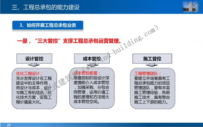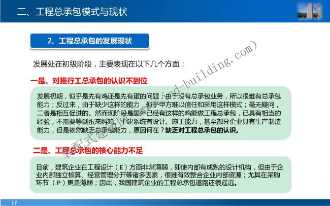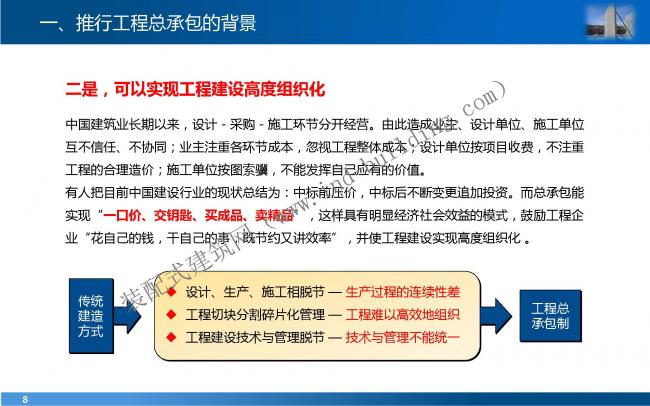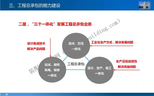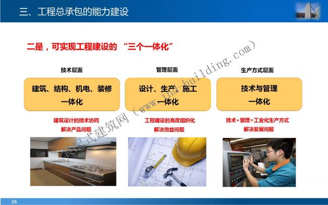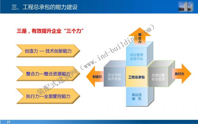 叶秘书长指出,发展EPC工程总承包,可实现工程建设高度组织化和整体效益最大化,可在装配式建筑技术、管理和生产方式三个层面实现一体化,有效提升企业技术创新能力、资源整合能力和全面管控能力。