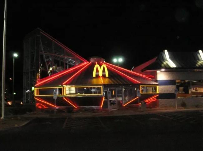 因此,才诞生了这个世界上唯一的飞碟麦当劳。采用轻钢构架+玻璃幕墙组合的形式,内部还有一个娱乐场。