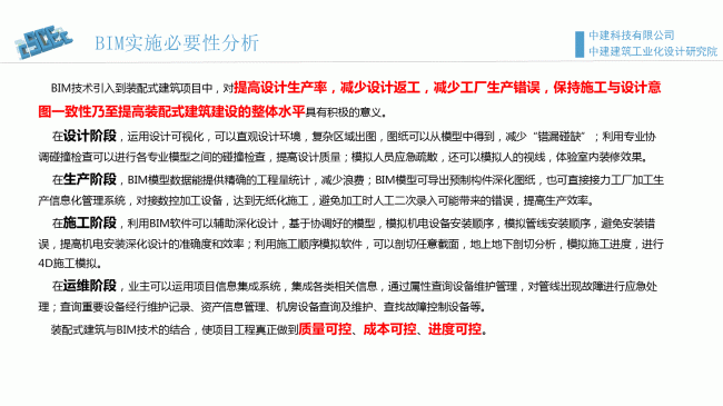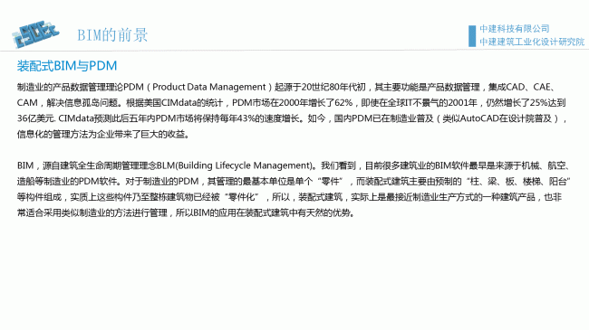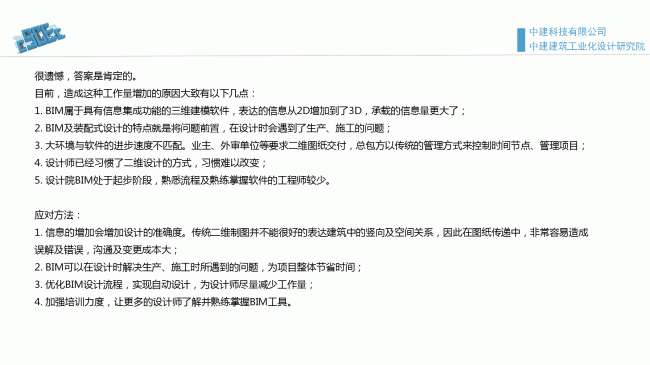 讲座对BIM技术进行了系统地总结,从宏观趋势至实际应用,主要包括:BIM的定义、前景、优势,选择使用BIM的原因与方式,设计院实际应用案例、未来应用展望等多个方面对BIM技术在装配式建筑设计中的应用进行了阐述。
