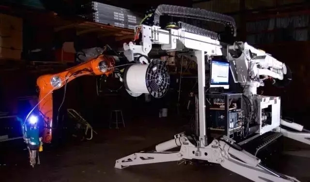 MIT多媒体实验室制造的数字建筑平台(DCP),是可移动的(最高速度0.5米/秒),并且是自己自足的。它是电池供电的(有几块太阳能电池板,也可以增加更多),所以只要有阳光,它基本可以一直运行下去。除此之外,DCP模仿了许多3D建筑打印机的功能:它可触范围很长,最大可打印量为2786立方米。机器人由两个机械臂组成,样机模型基本是模仿人类的:有一条很大很长的机械臂,自由度为4,可以完成整体动作,以及一个小的,灵敏的6自由度Kuka机械臂,可以完成精细动作,像我们的手和指头一样。将它们组装起来,总共的系统花费达到了244500美元。