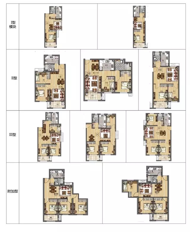 通过户型模块化设计,满足组合的多样性、灵活性和场地适用性