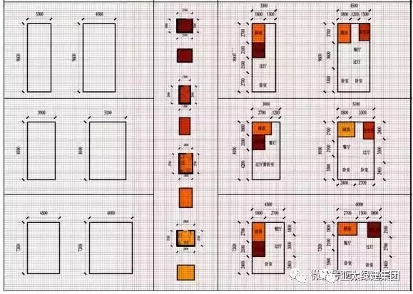 ❶各种模块均以3M为基准模数,通过模块控制户型尺寸,便于户型组合及布局调整