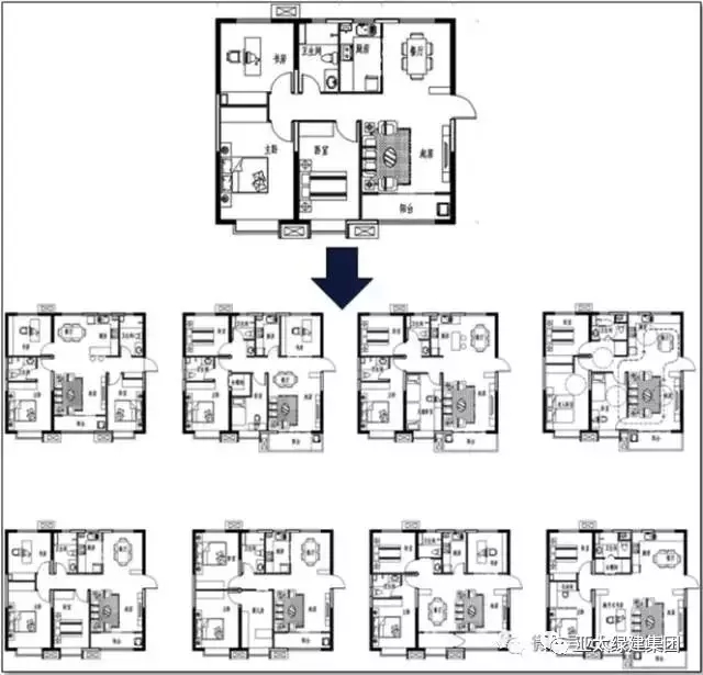 标准化和模块化的设计模式,实现住宅空间支撑体系与填充体系的分离,形成开放式格局。达到了空间可变及高度的适应性,实现“百年住宅”和全客户群覆盖。