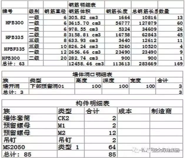 按照装配式建筑的特点,通过分类统计进行快速的工程量分析,实现对成本的初步控制。