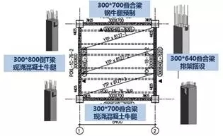 本项目经过多次方案对比,最终选择矩形柱现浇、搭设排架搁置叠合梁的方案进行施工,双T板两端搭设在倒T梁上,吊装调整后进行单侧焊接。