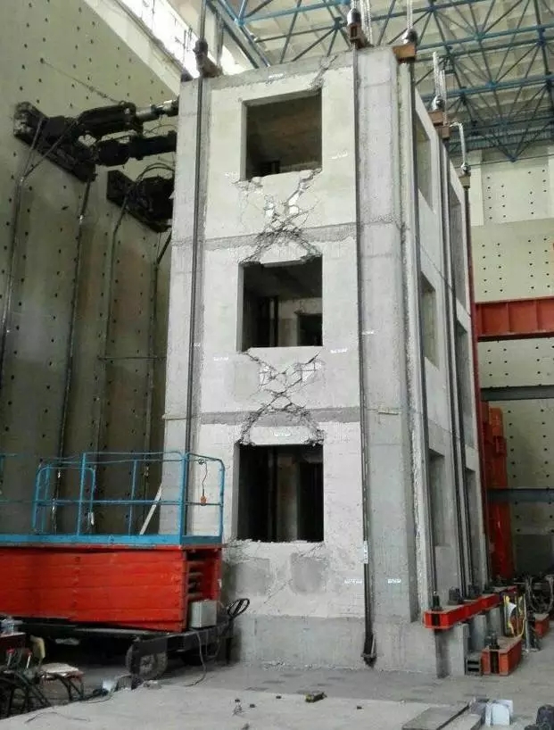 国内首例3层9米高装配式剪力墙结构模型整体抗震拟动力试验。