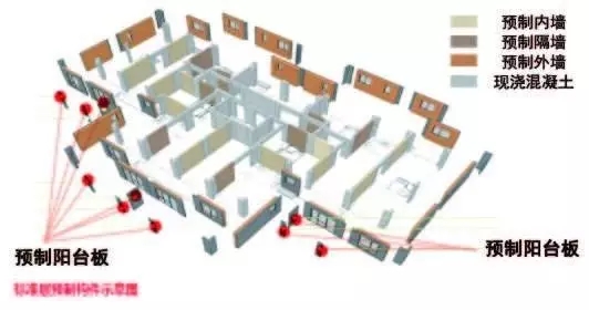 外墙、内墙、楼板、阳台、空调板、楼梯、轻质内隔墙,正负零以上预制率50.5%。