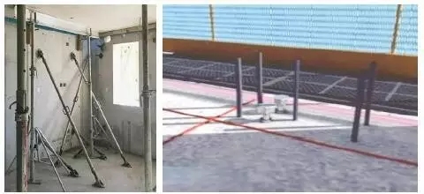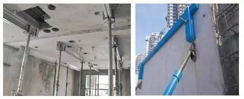 叠合板支撑体系:叠合板采用定型独立支撑,墙顶交接节点设置圈边龙骨,叠合板之间的拼缝采用吊管模板,保证施工质量和效果美观。